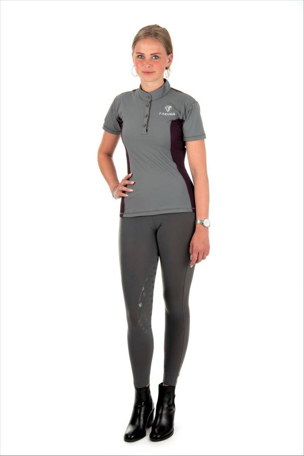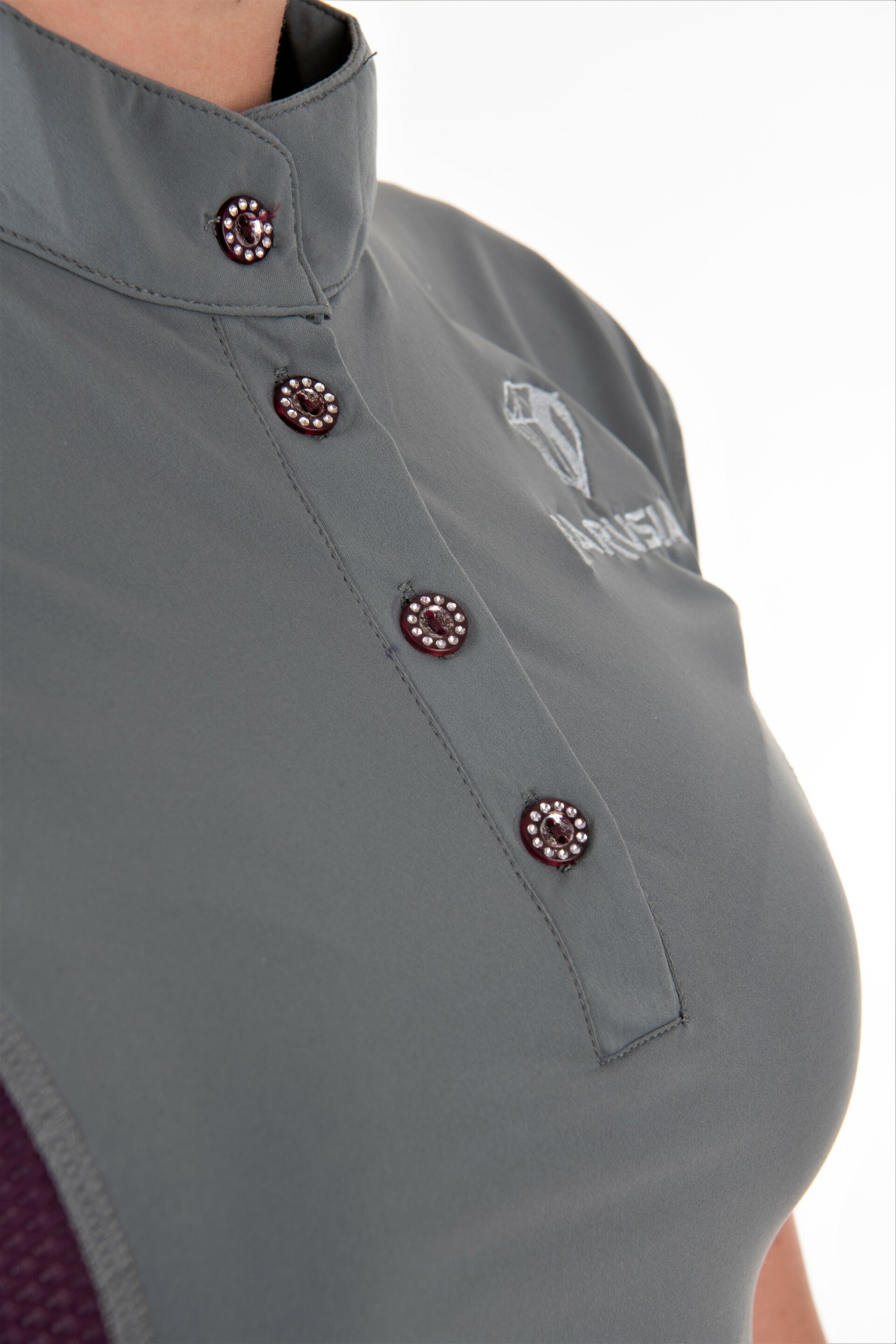 The classic collar with crystal buttons and a logo at the chest and shoulder bring a little something extra to your outfit. this shirt is not only great to wear in training, but also in your next competition.