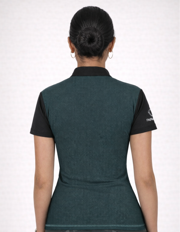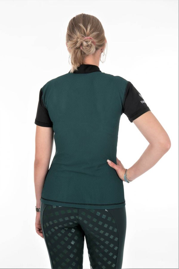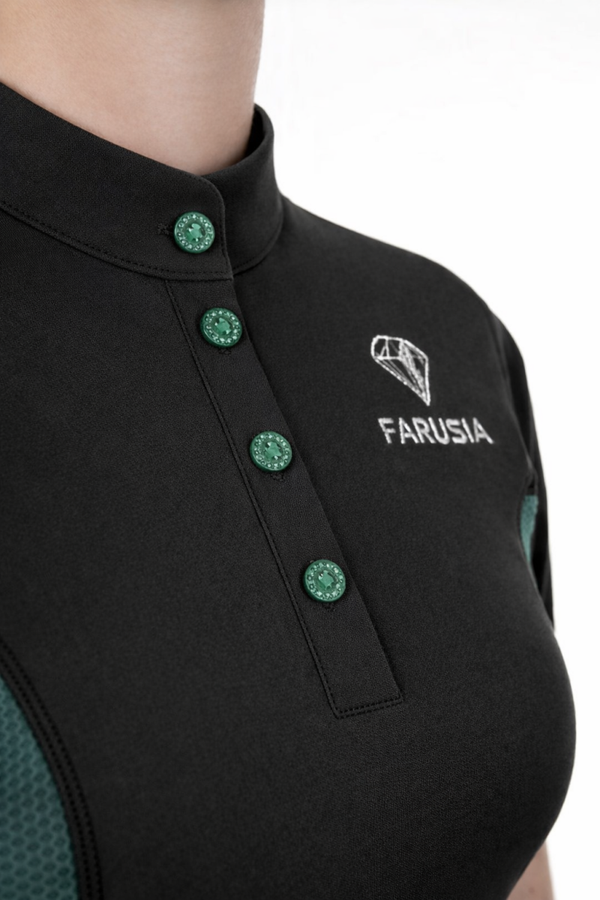 The classic collar with crystal buttons and a logo at the chest and shoulder bring a little something extra to your outfit. this shirt is not only great to wear in training, but also in your next competition.