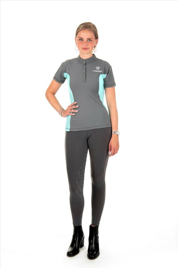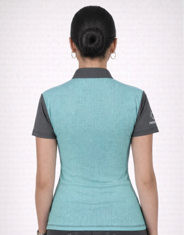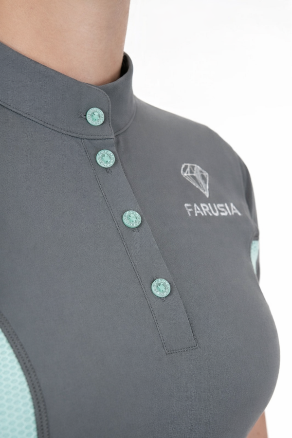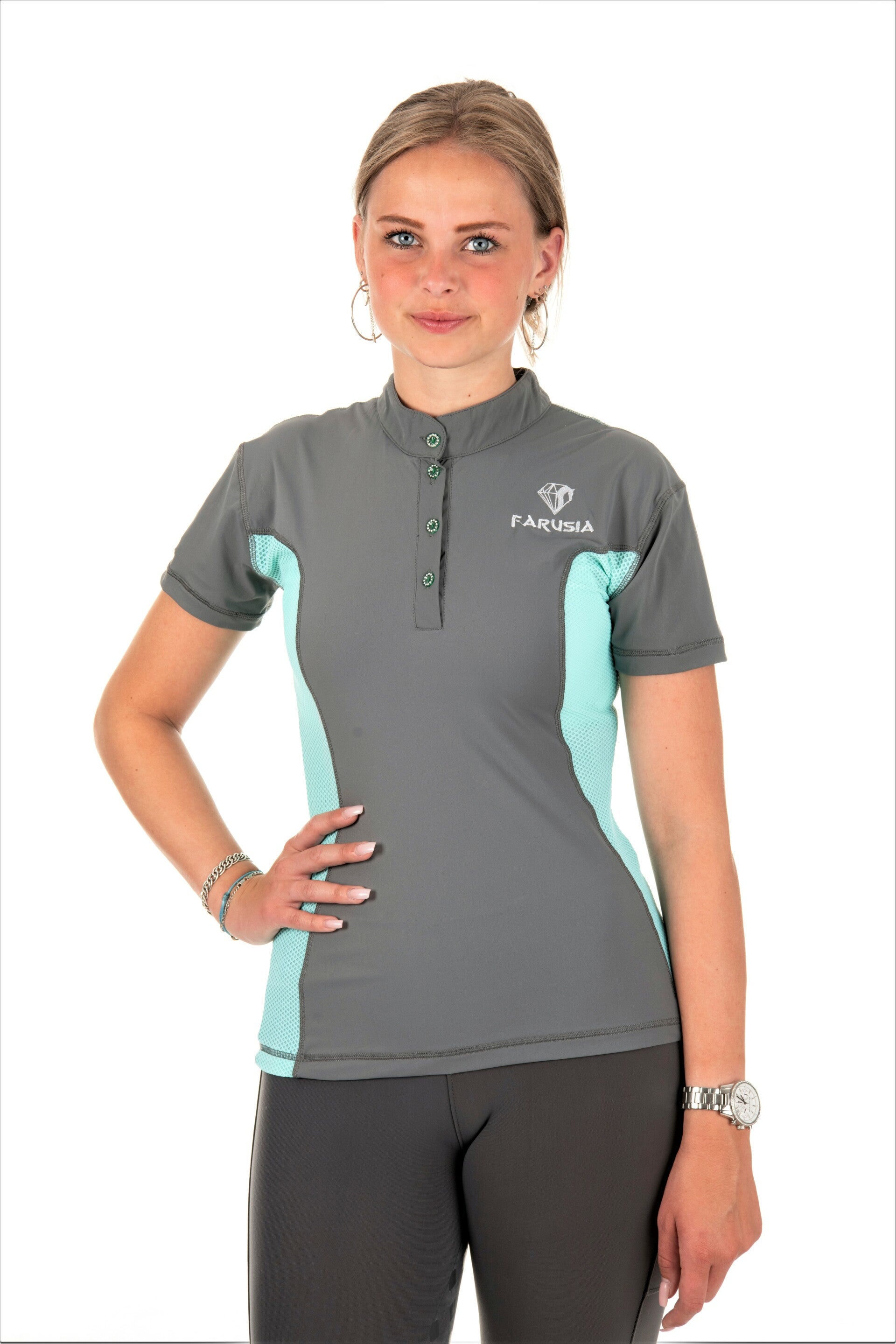 The classic collar with crystal buttons and a logo at the chest and shoulder bring a little something extra to your outfit. this shirt is not only great to wear in training, but also in your next competition.