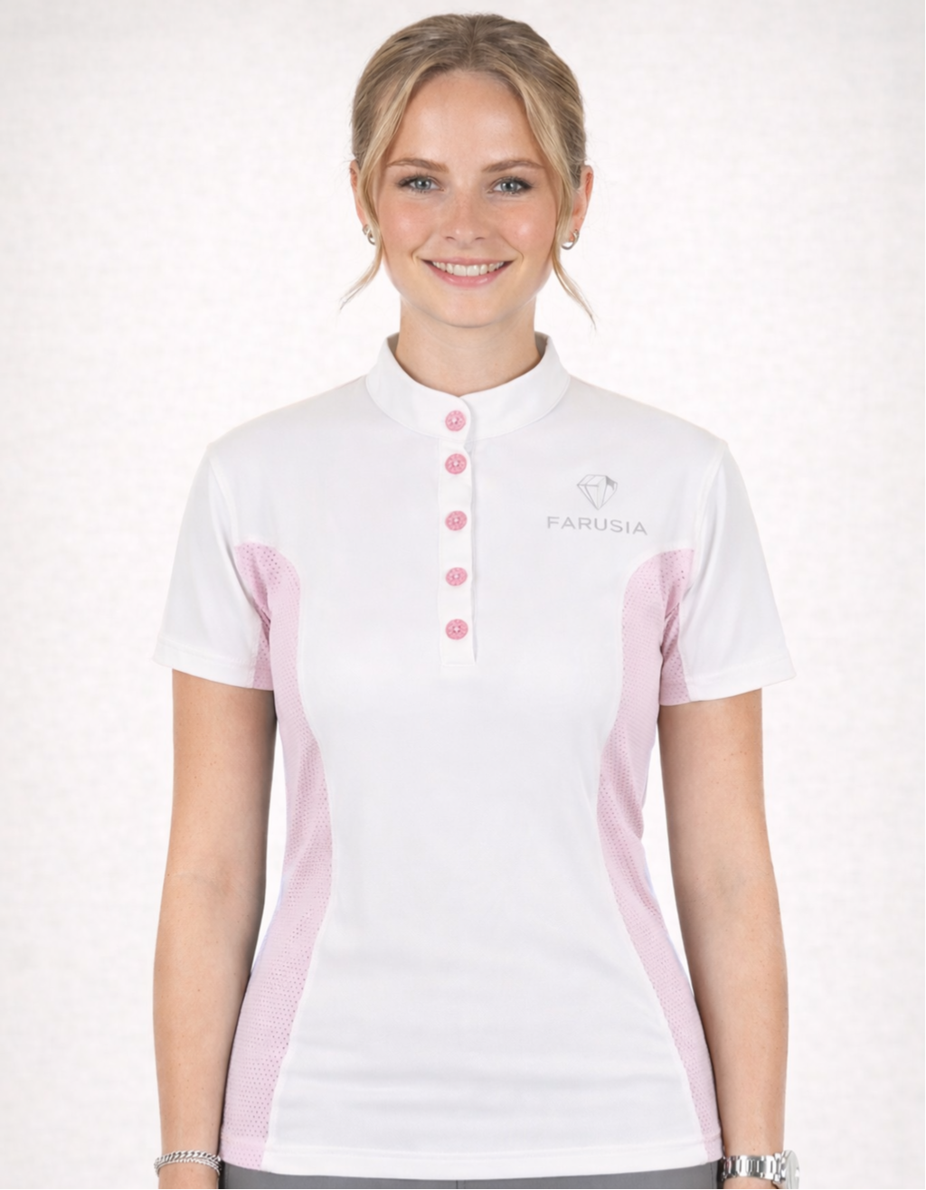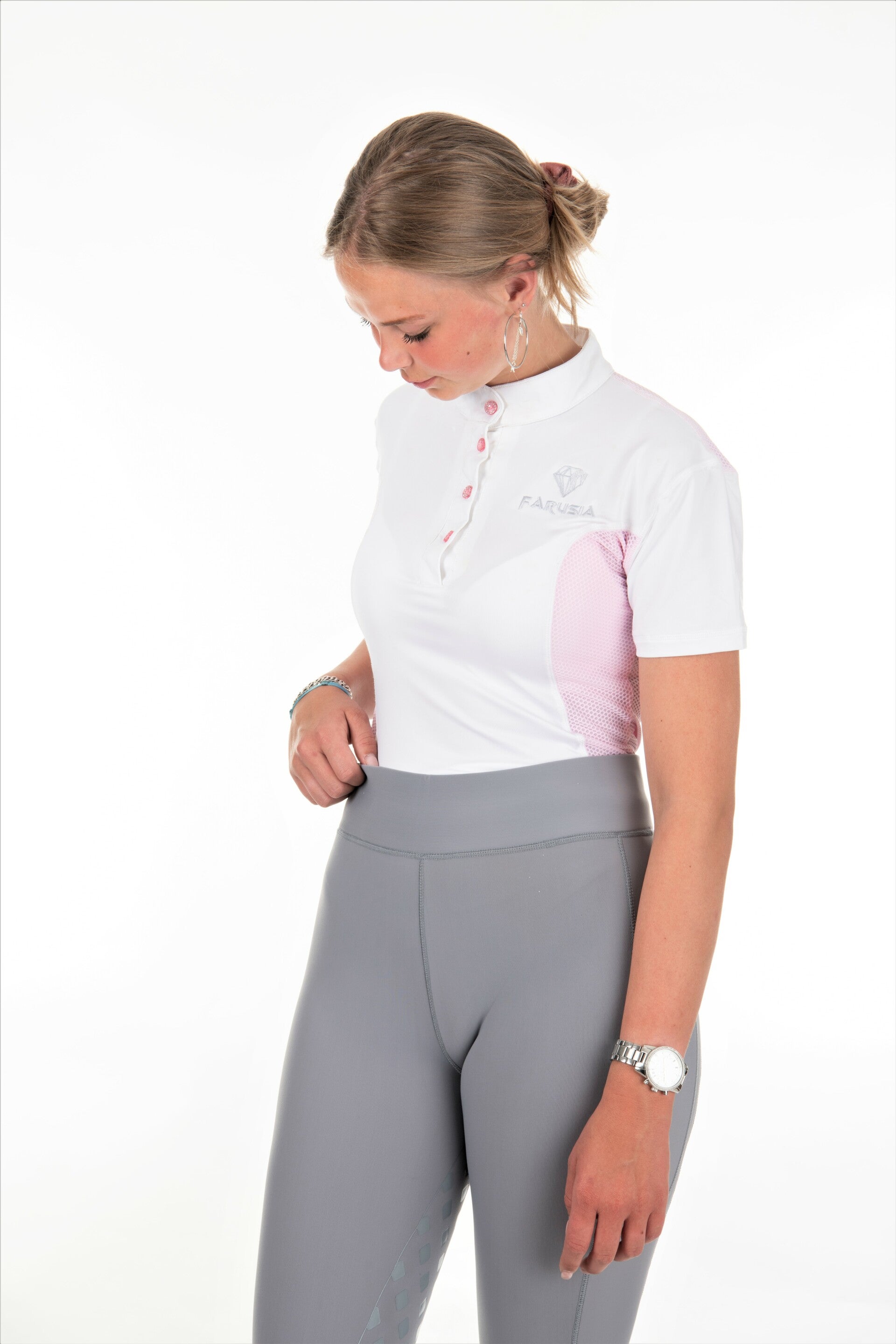 The classic collar with crystal buttons and a logo at the chest and shoulder bring a little something extra to your outfit. this shirt is not only great to wear in training, but also in your next competition.